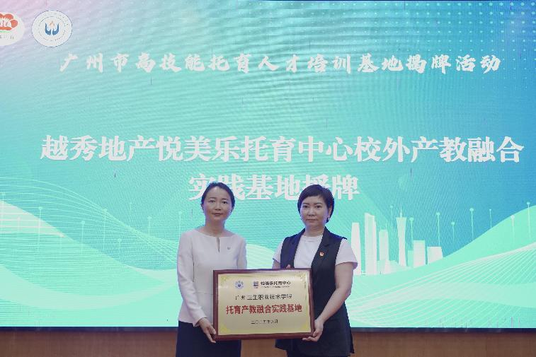 广州卫生职业技术学院为越秀地产悦美乐托育中心校外产教融合实践基地授牌,致力于将一线实践经验、行业标准与管理理念融入人才培养全过程,“产教协同、校企合作”共育高质量托育专业人才。
