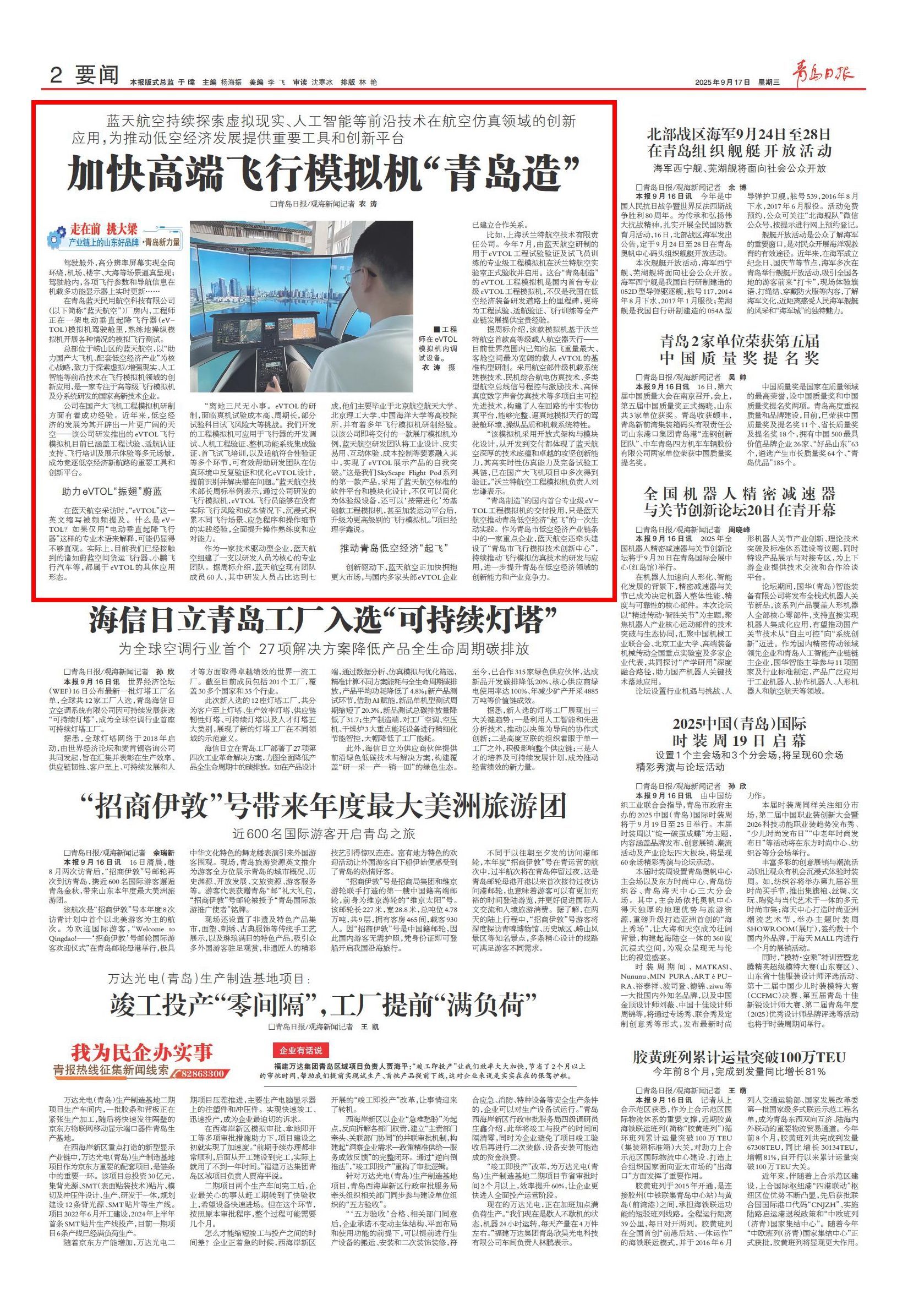 比如,上海沃兰特航空技术有限责任公司。今年7月,由蓝天航空研制的用于eVTOL工程试验验证及试飞员训练的专业级工程模拟机在沃兰特航空实验室正式验收并启用。这台“青岛制造”的eVTOL工程模拟机是国内首台专业级eVTOL工程模拟机,不仅是我国在低空经济装备研发道路上的里程碑,更将为工程试验、适航验证、飞行训练等全产业链发展提供宝贵经验。