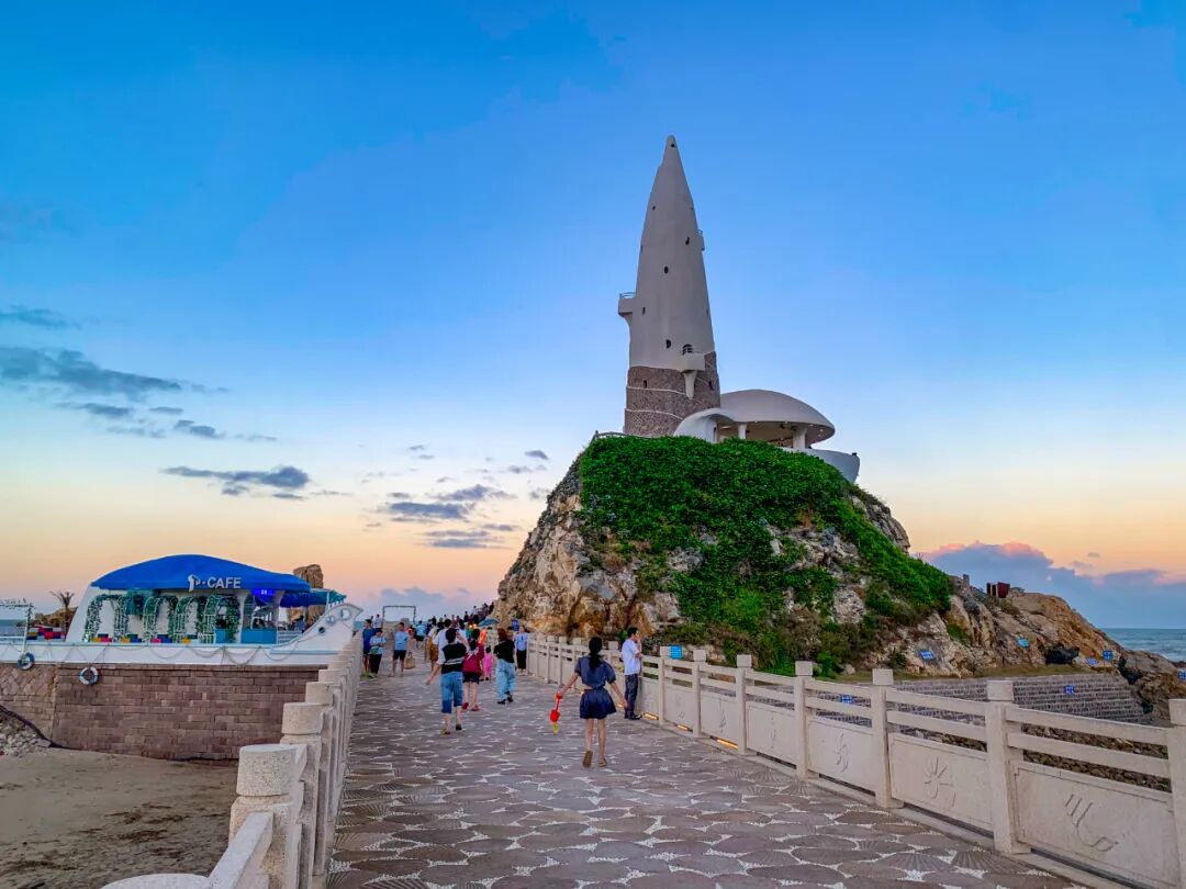 有游客说站在海螺塔下看海,才懂什么是“海阔天空”。远处的闽江口与蓝天连成一片,近处的浪涛推着碎银般的光,沙滩上的人影被夕阳拉得很长像一串流动的音符。