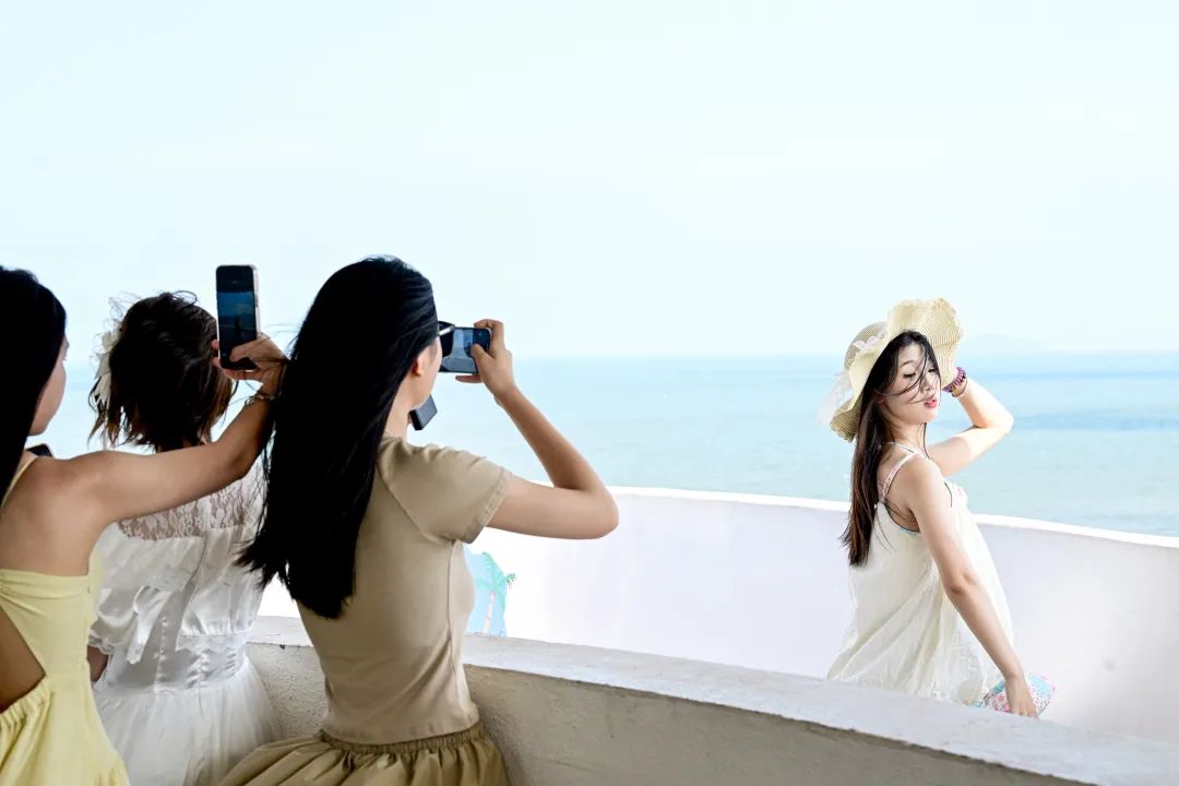 下沙美丽的海景吸引游客拍照打卡。陈坚摄