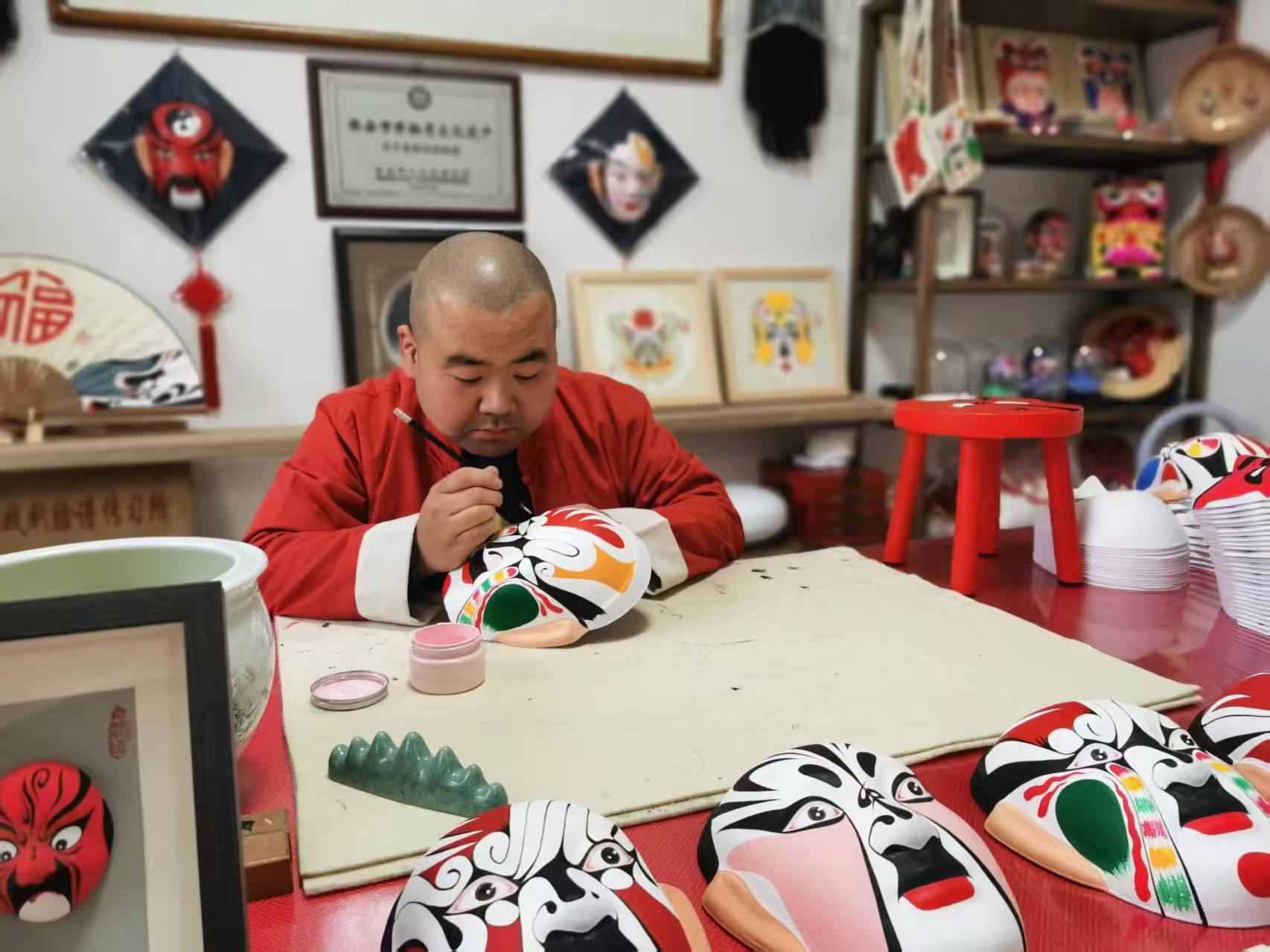 陈耀武正在非遗传习所绘制秦腔脸谱受访者供图