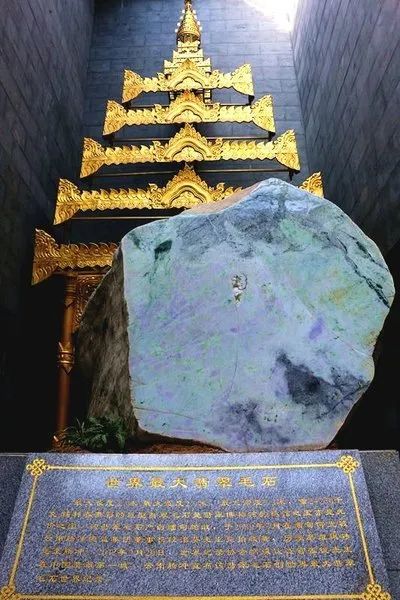 “我们见到了也触摸到了世界上最大的宝玉石!” 这是博物馆的镇馆之宝。一块巨大的翡翠毛料,它长3.4米、宽2.9米、高2.3米、重量超过24吨,经世界纪录协会认证,确认它为“世界最大翡翠毛石”,切开之后发现翡翠纹饰形似带刀将军人形。