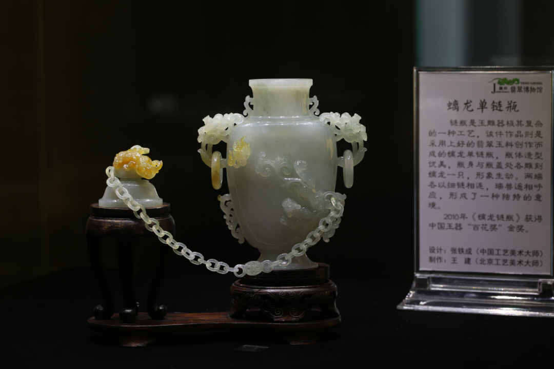 博物馆展陈以传统实物和现代科技相结合,特色鲜明,融科学性、知识性、趣味性和观赏性于一体。各展厅相互呼应,环环相扣,构成一条流光溢彩的时空隧道,讲述着中华玉文化五光十色的前世今生。大美大雅,琳琅满目,魅力独具,是翡翠文化精华荟萃之巅峰。