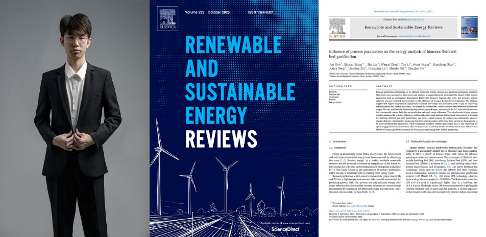 (通讯员 段姣姣)生物质气化是实现能源结构绿色转型、助力“双碳”目标的关键技术。近日,湖南城市学院市政与测绘工程学院本科生郭俊在该领域取得重要研究进展,为高效生物质能源系统的开发提供了关键的理论指导。该研究成果以《Influence of process parameters on the exergy analysis of biomass fluidized bed gasification》为题,发表于中科院SCI一区顶级期刊《Renewable and Sustainable Energy Reviews》。