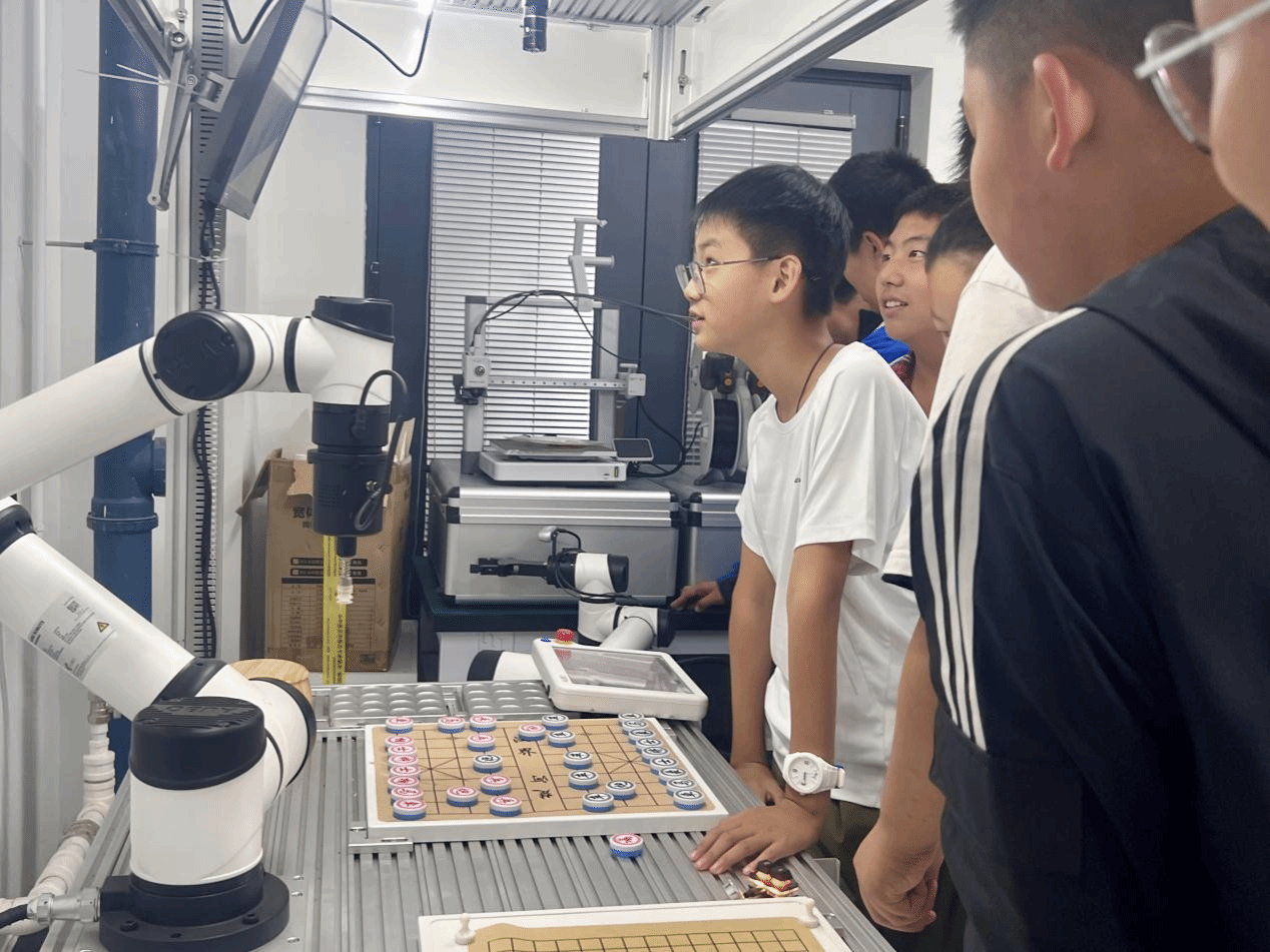最后,师生们登上智慧大楼三楼的工业机器人研究所。在充满科技感的展厅内,研发人员现场演示了机器人在工业生产、智能制造中的实际应用,讲解了机器人编程与控制的基础原理,并邀请学生们近距离观察机器人的精准动作。当看到机器人灵活完成复杂作业时,现场不时响起阵阵掌声,学生们对人工智能与智能制造的好奇心被彻底激发。