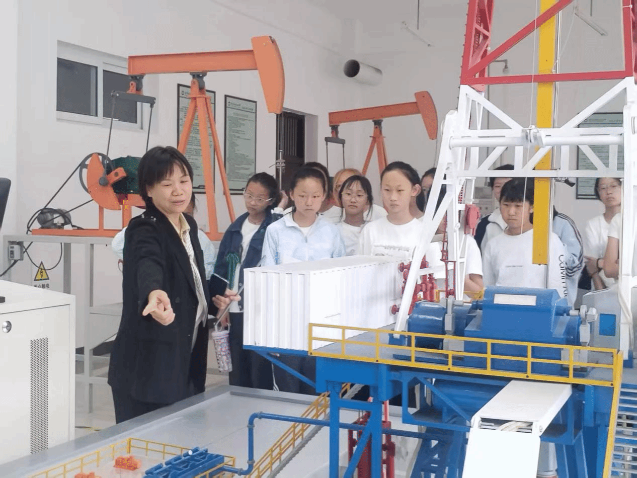 在石油天然气工程学院的石油工程专业实验室,通过仿真模拟系统、油气开采模型等展陈,生动还原了石油勘探、钻井、开采及集输的全流程。科普老师结合模型详细讲解了石油工程领域的核心技术与发展现状,从传统开采到智能油田建设的技术革新,让学生们对“工业血液”的获取过程有了系统认知,也真切感受到石油行业背后的科学力量与技术担当。