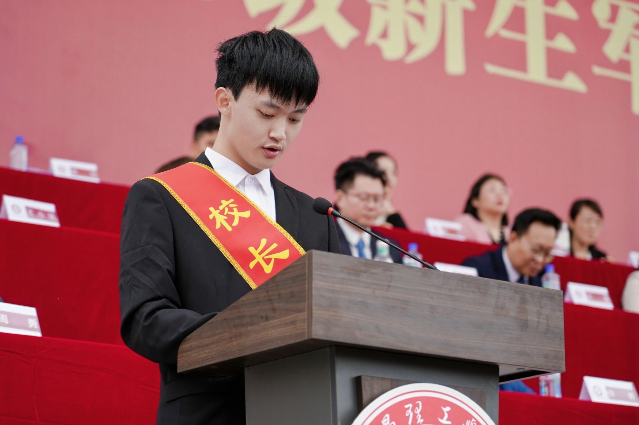9月22日上午,武昌理工学院2025级新生军训检阅式暨开学典礼现场,人工智能学院计科2209班刘蕤豪作为受表彰学生代表发言,他向新生分享了自己收获的三个关键词:勇于创新、点燃梦想;勤于实践、追求卓越;敢立大志、心怀家国。