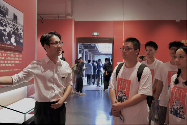 随后,师生步入《烽火丹心——刘少奇与抗日战争》专题展览厅。通过抗战时期刘少奇同志的手稿、办公用品等文物,以及纪念馆讲解员的生动讲述,大家深入了解了刘少奇同志在抗日战争中的卓越贡献,感悟其坚定的理想信念、崇高的革命精神和深厚的为民情怀。