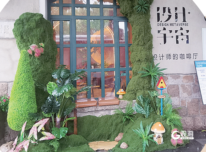 “咖啡+设计”的理念还在延伸。位于胶州路聊城路交叉口的“设计师的咖啡厅”二店以绿植DIY为主题展开新的探索。门店外的绿植景观仿佛宫崎骏动画中的梦幻场景,店内咖啡香与植物清香交织。穿过“植物洞窟”,便是负一层的植物手作体验区。在这里,植物手作所需的原材料、工具和配件等一应俱全。顾客可以用喝完的咖啡杯DIY属于自己的迷你森林,从土壤的选择到植物的摆放,每一步都充满了乐趣与成就感。