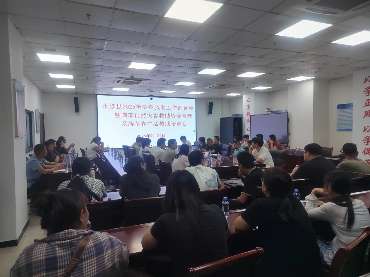 9月24日下午,永修县召开了2025年冬春救助工作部署会暨国家自然灾害救助资金管理系统冬春生活救助培训会,旨在切实做好冬春期间受灾群众的基本生活救助工作,提升相关工作人员对国家自然灾害救助资金管理系统的操作水平。各乡镇灾害信息员及部分村级灾害信息员参会。