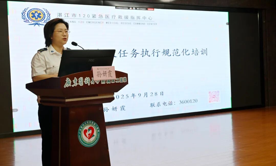● 湛江市120指挥中心指挥调度科科长孙妍霞主讲《120接警处置执行规范》,强调接警流程标准化对提高急救效率的关键作用;