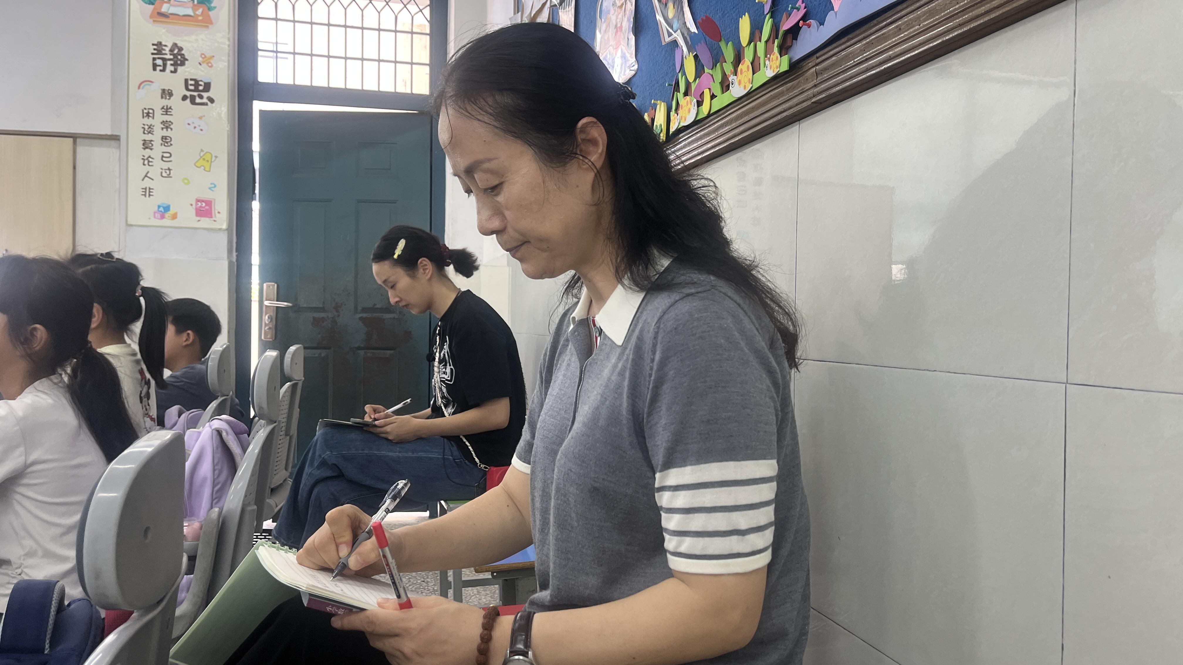 公开课上,竺君斐在做笔记。摄影/记者 贺艳