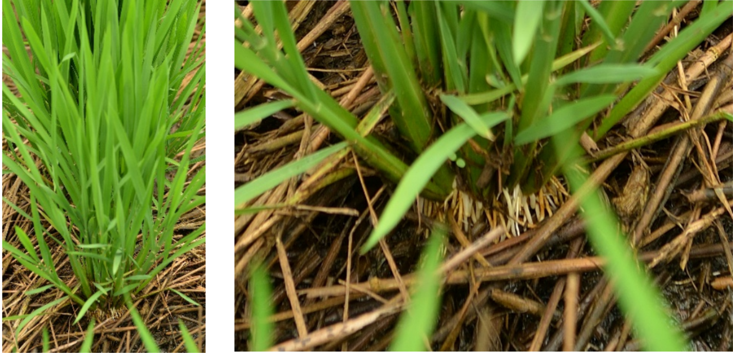水稻秧苗在小麦秸秆层适应性