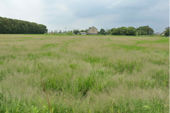周边一块常规稻田草害严重