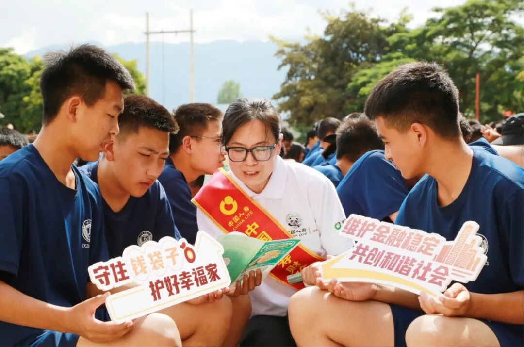 日前,云南省红河哈尼族彝族自治州的金融机构工作人员深入校园开展金融安全知识宣教活动,帮助师生明辨金融风险。图为工作人员向学生介绍金融消费维权、反电诈、保险等金融知识。