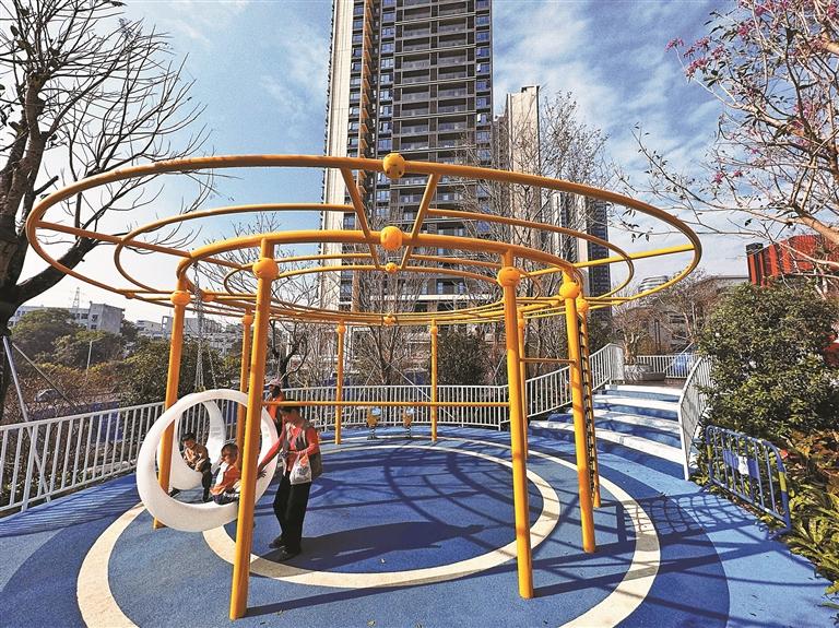 今年7月底,项目建成后,每天17时前后最热闹,孩子滑滑梯,老人带小马扎坐在树下拉家常。81岁的刘玉珍老人说:“以前想活动,要走到1公里外的求水岭公园,现在下楼就是。”