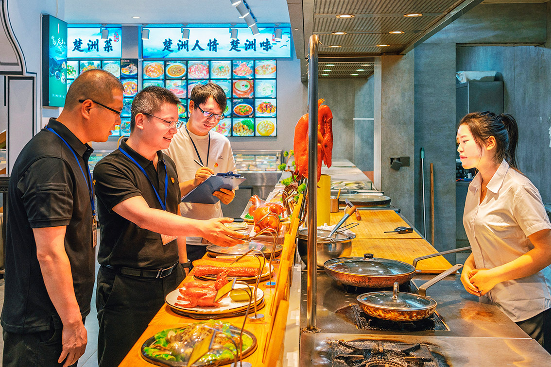 学习教育期间,纪检监察机关加大对违规吃喝等享乐主义、奢靡之风的整治力度。图为浙江省玉环市纪检监察干部在当地餐馆了解相关情况。 范锦洋/摄