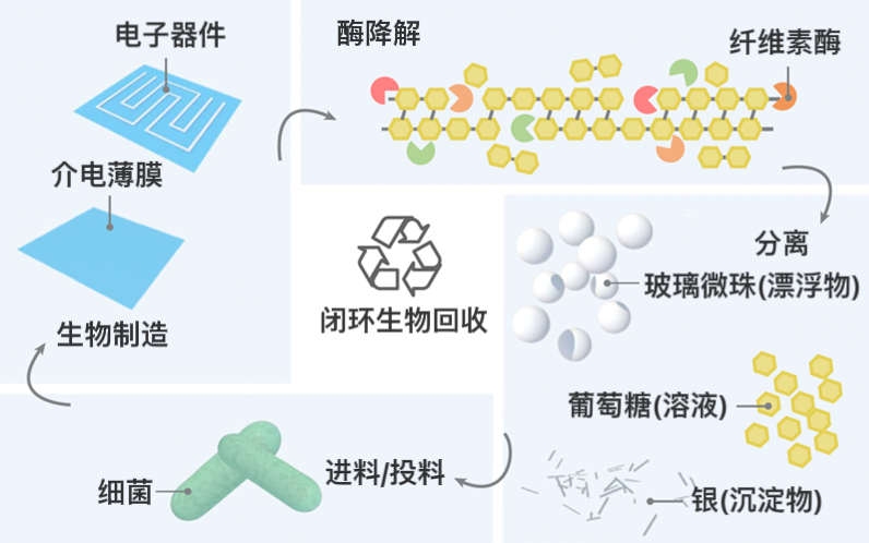 基于纤维素介电薄膜的电子器件闭环生物回收循环过程的完整流程