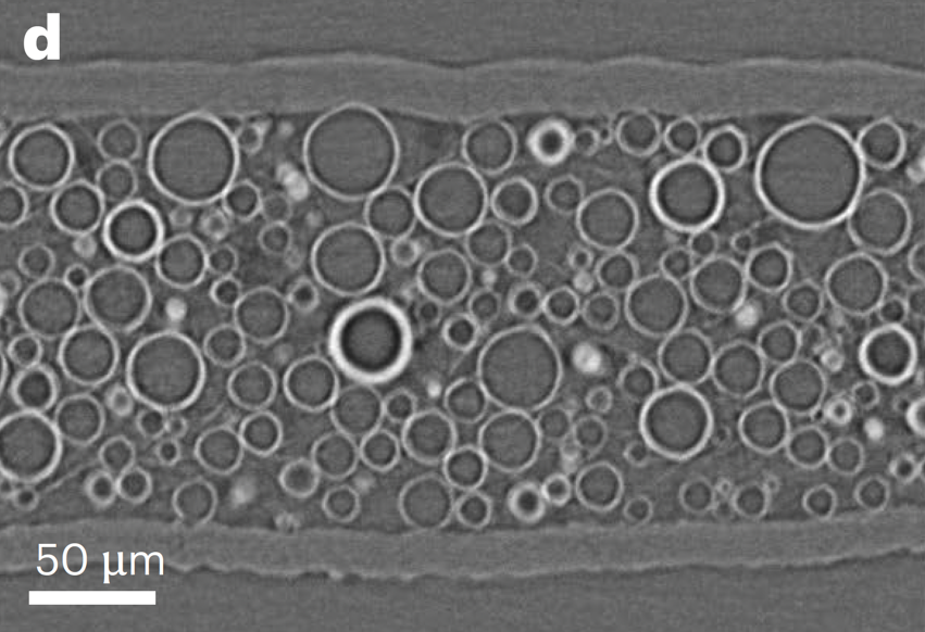这种生物制造过程的精妙之处在于,细菌会本能地向氧气丰富的区域移动,穿过密堆积的玻璃微珠之间的空隙,留下分泌的纤维素纳米纤维,形成连续的三维网络。这就像是大自然的建筑师在微观尺度上精心设计的“三明治”结构,每一层都有着独特的功能,整体却浑然一体。
