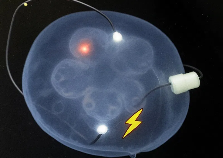 在这项研究中,那只被电刺激后不断变形、游动的水母,就是那个“池塘”。