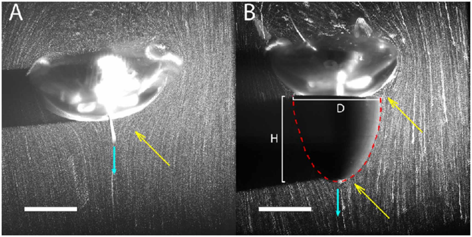 D 仅用一台从顶部拍摄的高速摄像机,并通过两侧的两面镜子反射,就能同时捕捉到水母的顶部、侧面和正面三个视角的影像 。