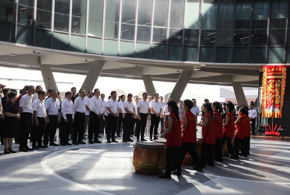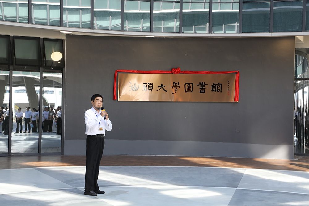 开馆仪式由图书馆馆长陈景熙主持,在学校二十四节令鼓队鼓舞人心的节奏中拉开序幕。校党委书记唐锐与校党委副书记、校长郝志峰共同主礼,为国际著名潮籍学者饶宗颐教授题写的“汕头大学图书馆”匾额揭幕。