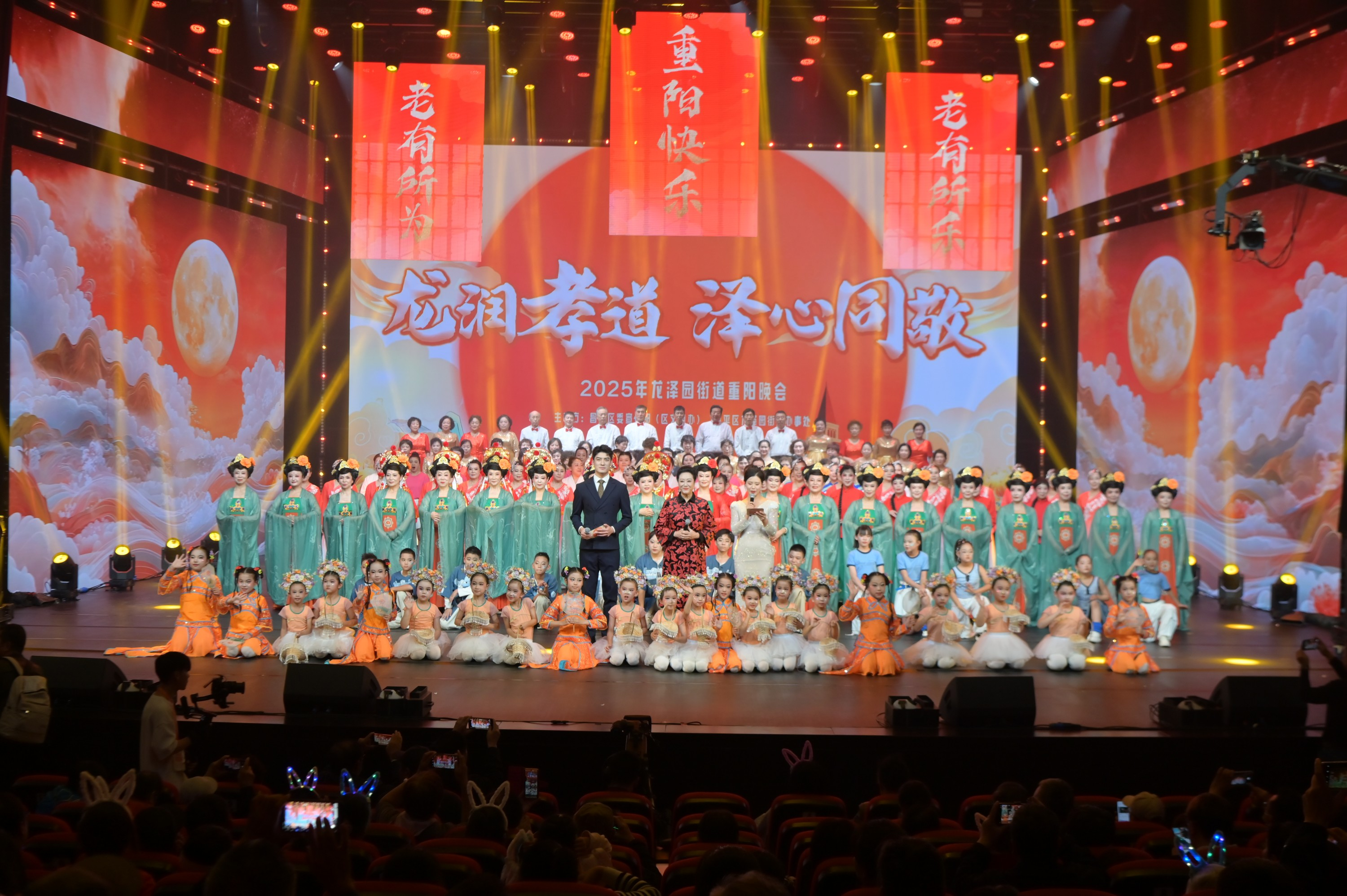 10月12日晚,由昌平区委宣传部(区文明办)、龙泽园街道办事处联合主办的“”龙润孝道 泽心同敬——2025年龙泽园街道重阳晚会”在回龙观文化艺术中心晓剧场精彩上演。晚会依托“龙泽益家”IP矩阵,汇聚300余名演员,特邀行业大咖为全辖区居民呈现了一场兼具传统底蕴与创新活力的视听盛宴,让重阳节的敬老情怀在龙泽园街道落地生根。