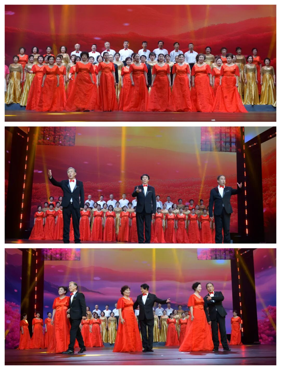 戏曲串烧《花木兰》《智取威虎山》重现红色经典,大合唱《夕阳红》则以熟悉旋律勾起全场回忆。
