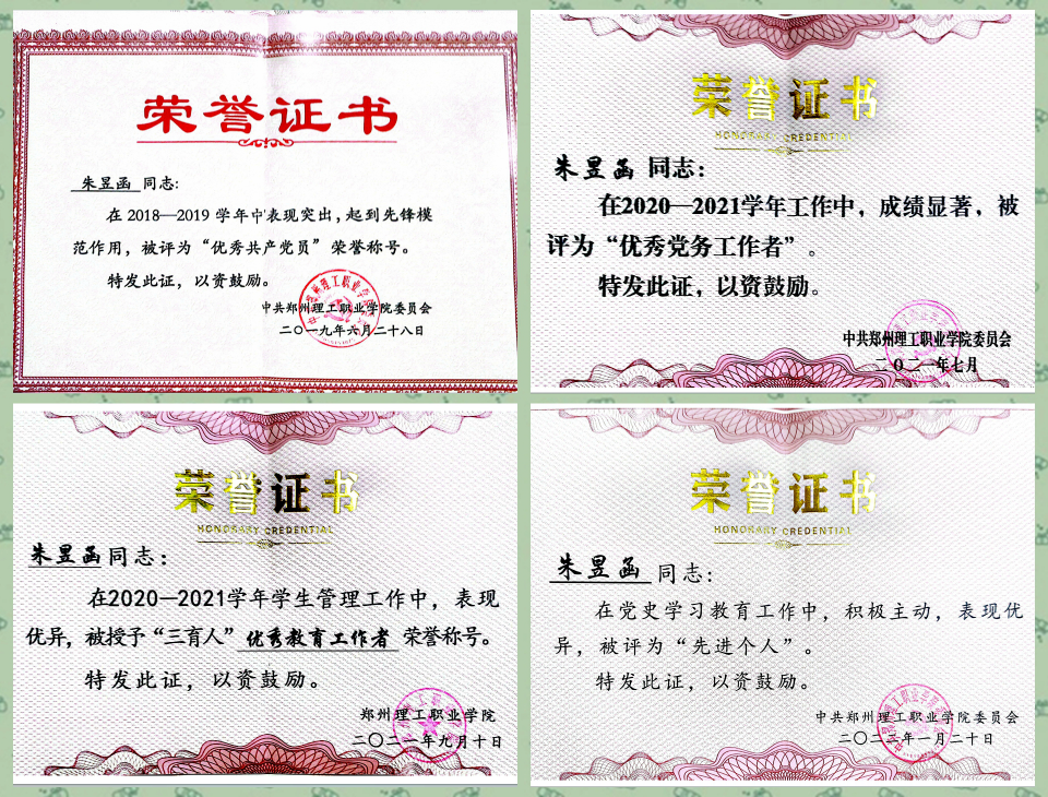 因表现突出,她先后被评为学校优秀共产党员、优秀党务工作者、优秀教育工作者、先进个人。