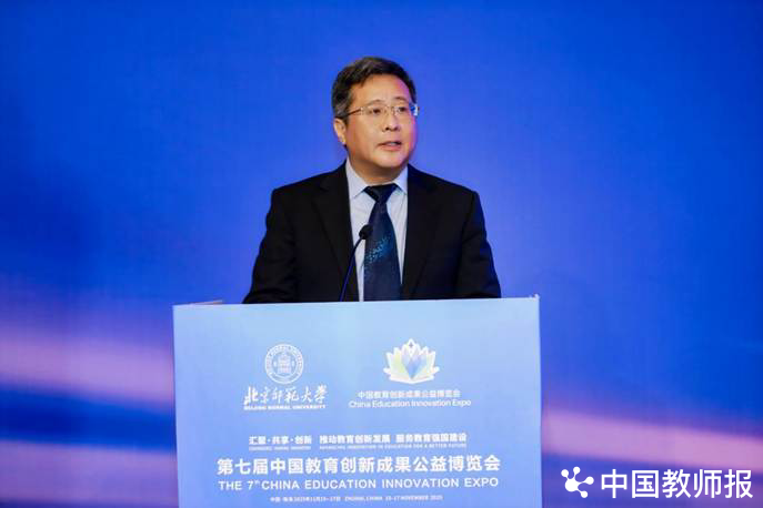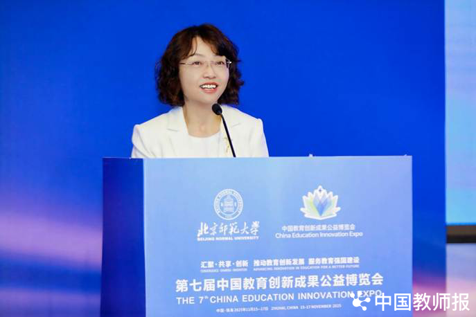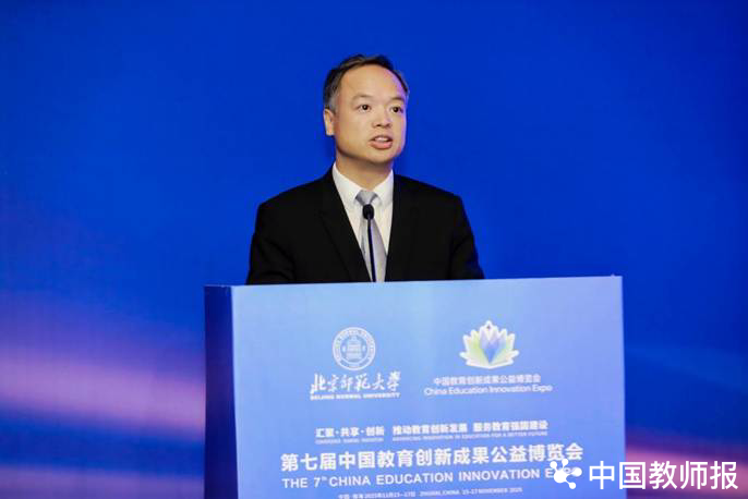 在主题发言环节,申继亮以《在碰撞中创新发展》为题进行发言。他指出,在深化基础教育综合改革的过程中,需着力形成立德树人长效机制,聚焦学生成长质量,关注数字环境下育人方式变革,尤其是人工智能快速发展,在赋能教育的同时也带来了巨大挑战,重塑着基础教育新生态。他表示,教博会为解决这些教育实践问题搭建了更为广阔的交流平台,广大教育人在教博会中相互学习借鉴,感受传统与现代的碰撞、理论与实践的碰撞、管理与学术的碰撞,在碰撞中凝聚智慧、协同攻关、创新发展,共同助力教育强国建设。