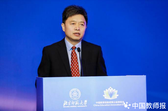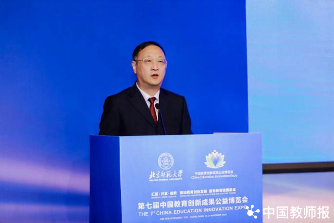 北京师范大学党委常委、常务副校长王守军致辞并介绍本届教博会筹备情况及活动亮点