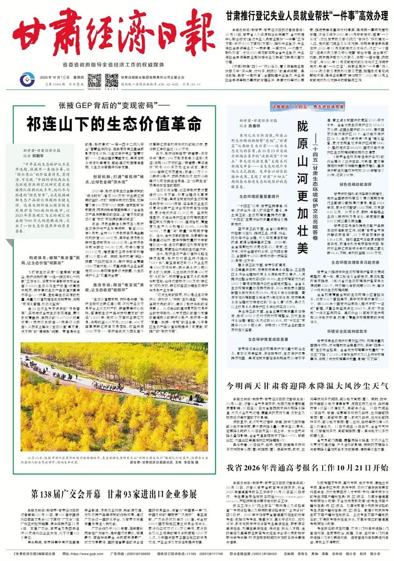 如今,张掖生态产品价值转化路径持续拓宽:张掖农村商业银行推出“GEP贷”,截至目前已助力4户企业获得1080万元贷款;民乐县水投公司以取水权为质押,从兰州银行获得500万元“水权贷”,标志着全省首笔水权质押贷款落地;山丹农商银行300万元“碳汇贷”成功发放,碳汇收益正反哺生态保护与绿色产业发展。