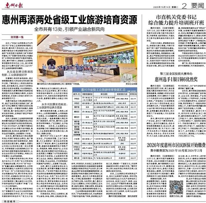 近日,广东省工业和信息化厅与广东省文化和旅游厅联合发布《2025年广东省工业旅游培育资源库入库名单的通知》,惠州核电“太平岭核电科普馆”科普研学基地成功入选2025年广东省工业旅游培育资源库入库名单。