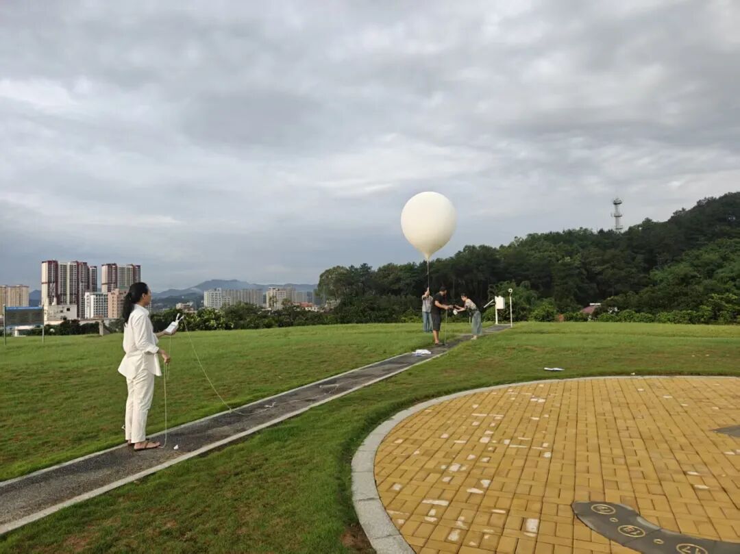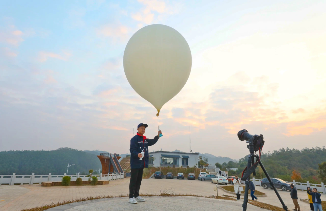 2024年1月1日,广东省河源国家高空气象观测站观测员施放北斗探空气球。 图:冯晓铭 文:王天巍
