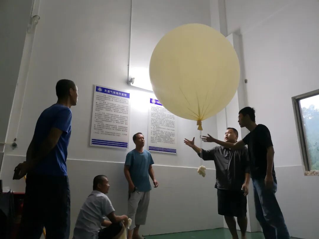 广西百色气象工作者正在施放北斗探空气球 摄影:韦丽英