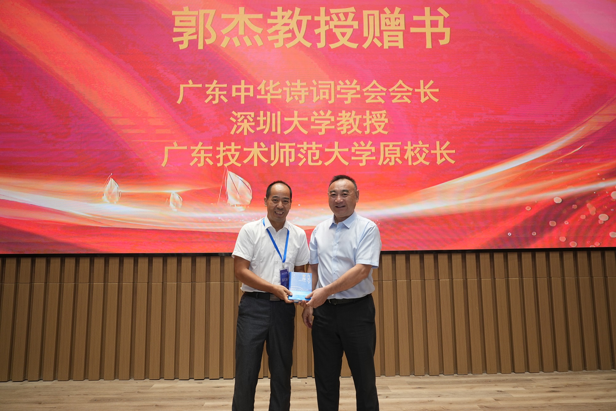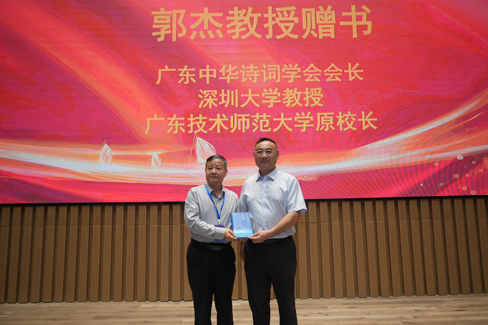深圳大学原党委书记、人文社会科学资深教授、饶宗颐文化研究院院长刘洪一教授;深圳大学党委常委、副校长汪永成教授以及教育部中文类专业教学指导委员会委员、深圳大学人文学院院长马自力教授分别致辞,对诗集及研讨会的意义进行了深入阐释。随后,郭杰教授向深圳大学图书馆、广东技术师范大学图书馆赠书,并发表简短致谢与感言,表达了诗歌创作四十年的体悟与对学界朋友的谢意。
