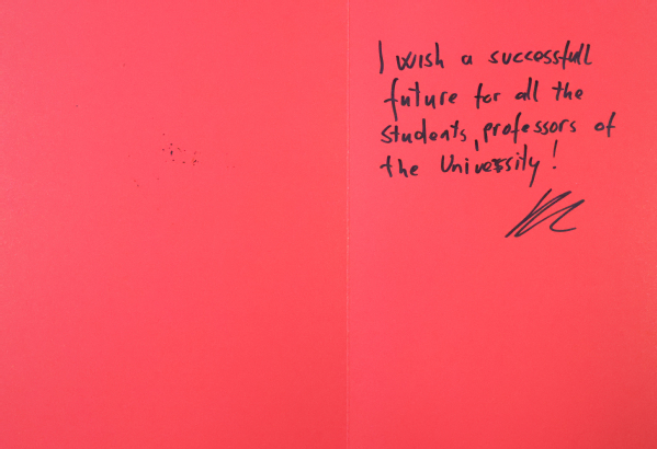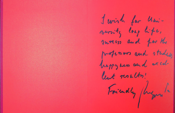 Shandong Vocational University of Foreign Affairs appointed Péter Medgyessy as a visiting professor, and President Sun Chengwu presented him with the letter of appointment. Péter Medgyessy wrote an inscription and message for the university: “I wish for university long life, success and for the professors and students happiness and excellent results.” László Kozma Levente also wrote an inscription and message for the university: “I wish a successful future for all the students, professors of the university!)”