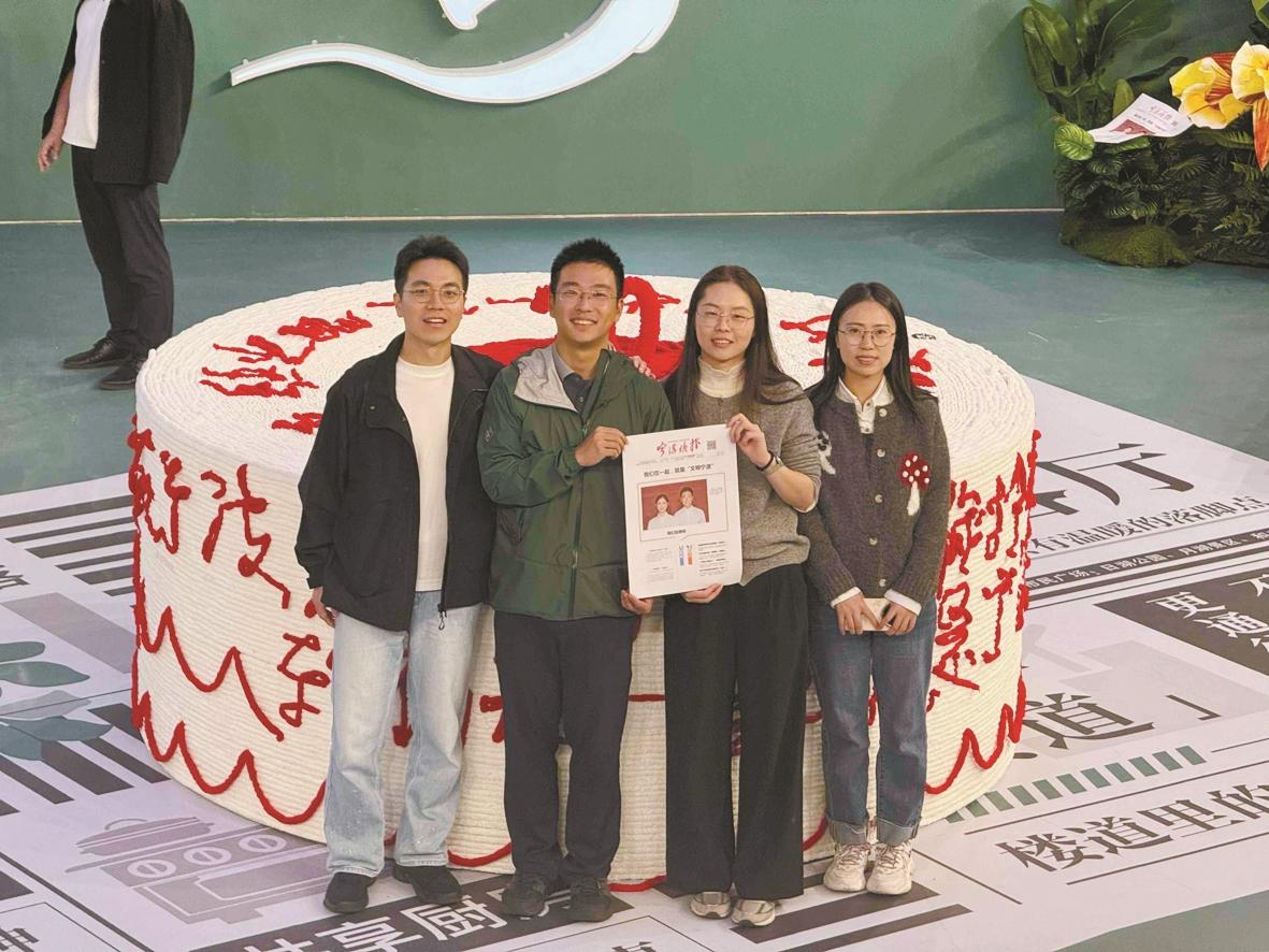 在“文明头条”拍照区,不少夫妻用打报机生成了一份特别的结婚纪念“号外”。