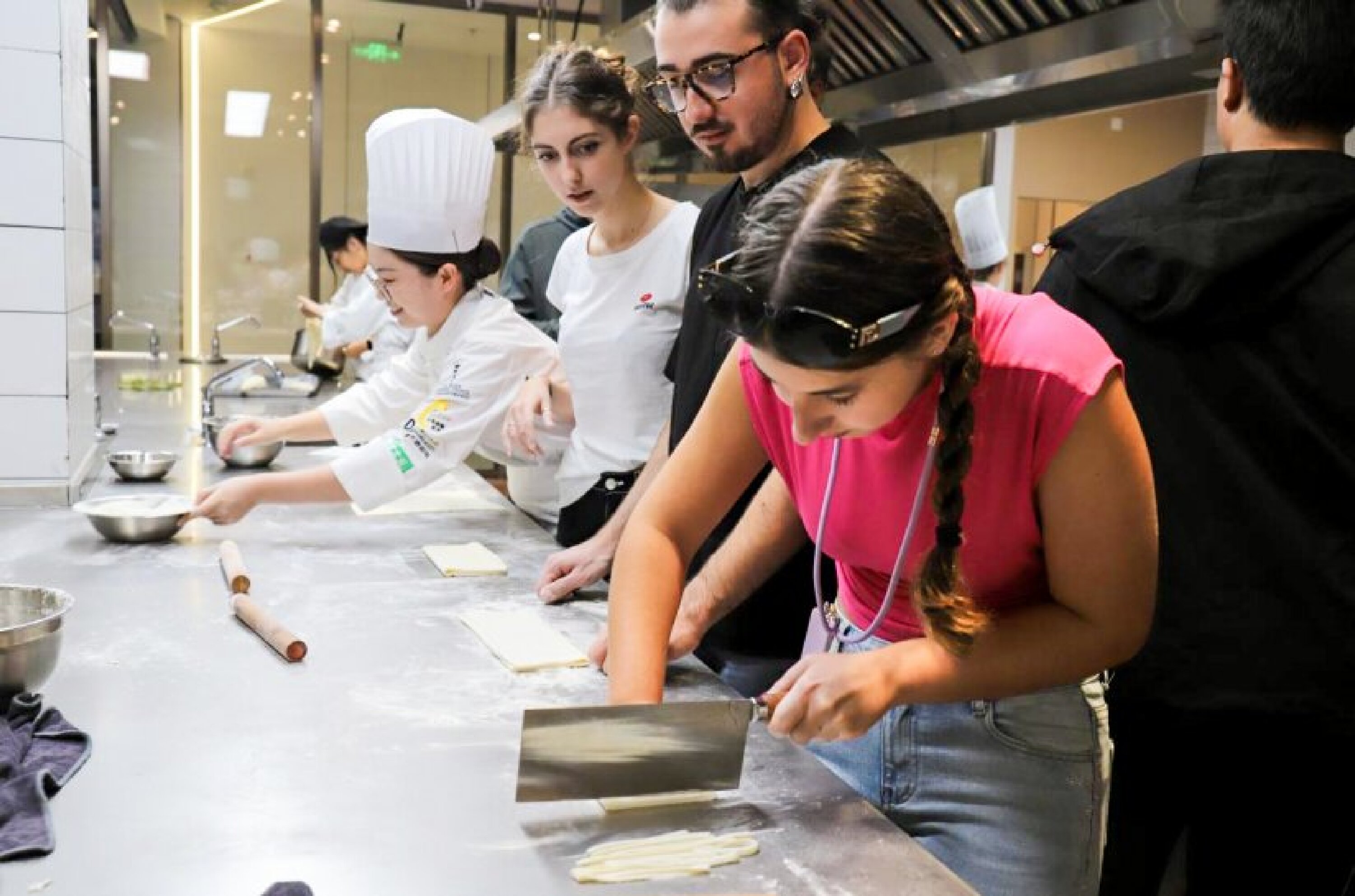 除了校园外的文化交流,意大利师生还参与了校园内的美食文化体验活动。该校新荣记学院以热情好客的“台州温度”接待了意大利师生,让他们充分感受到了中国美食文化的博大精深。随后,通过共同参与与互动交流,双方学生完成了主题摄影及短视频制作,并进行了主题作品分享。