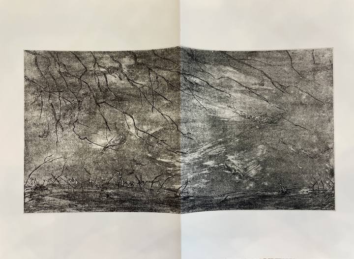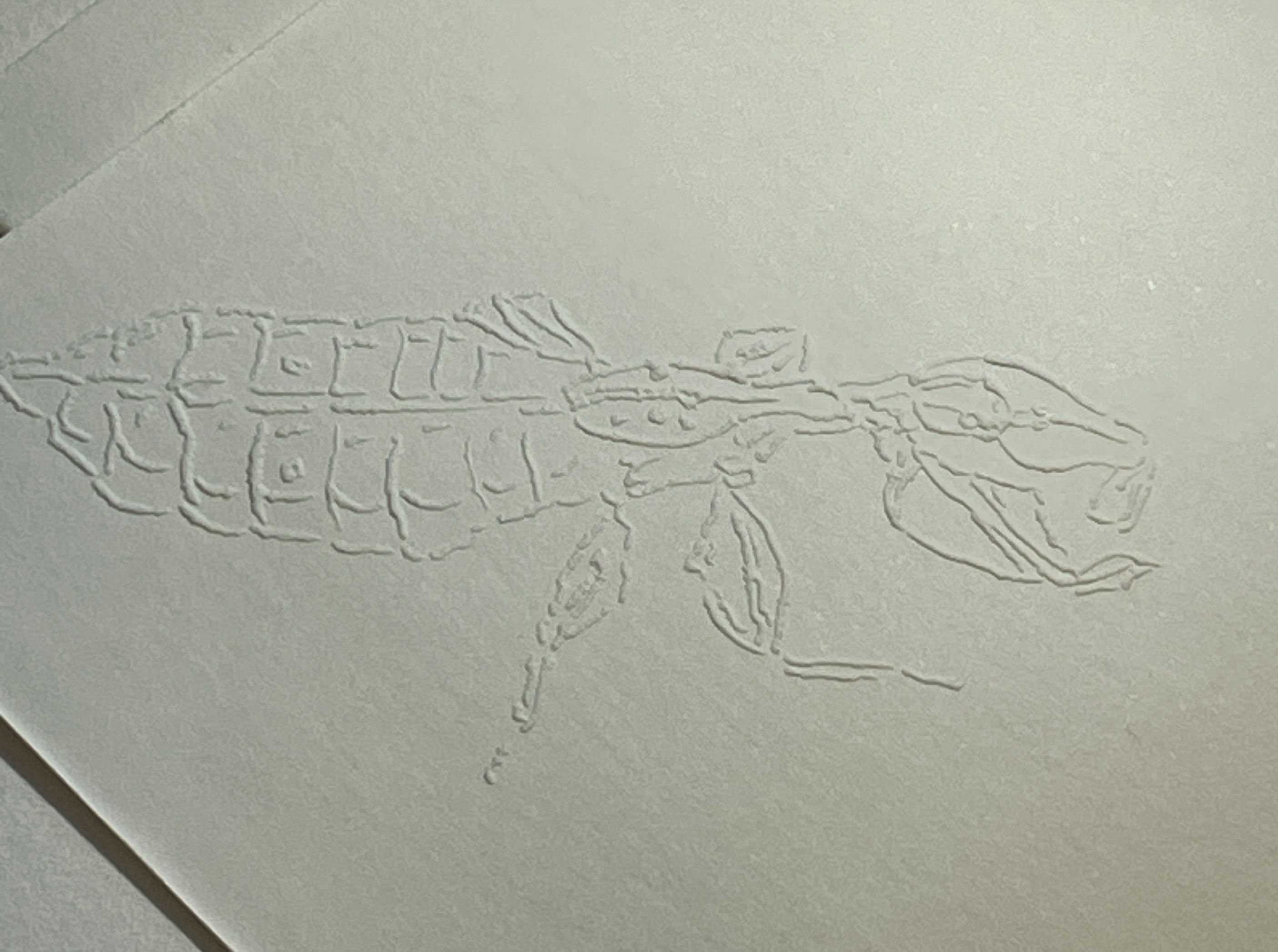 手工书《离开的第21天》以铜版画的深沉语言,记录一只蚂蚁的孤独旅程。金属蚀刻的痕迹与“离开”的孤独主题相互生发,文本与图像在制版过程中融为一体。