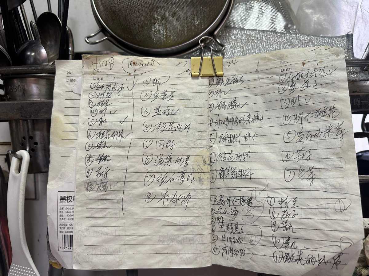 舒建梅每天列菜单的本子。郭婷茜摄