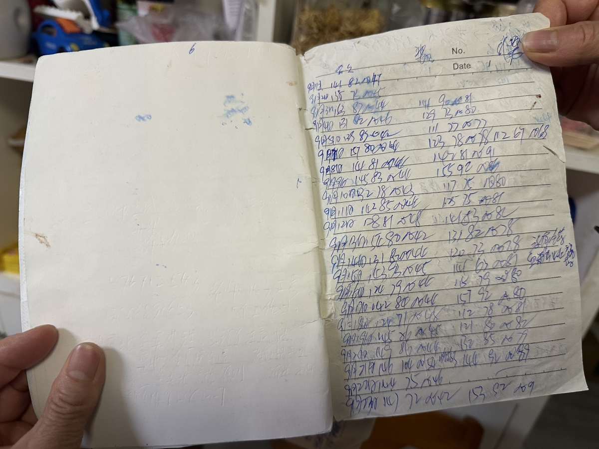 舒建梅记录老人血糖血压的本子。郭婷茜摄