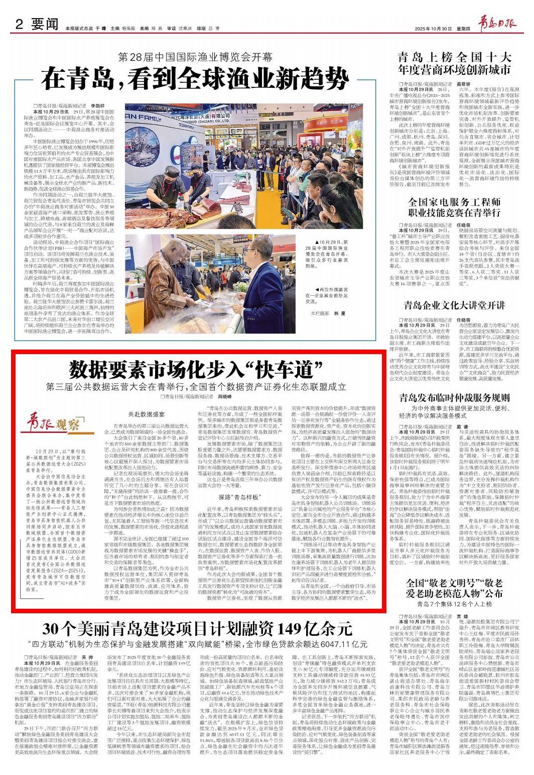 从青岛到全国,一个由政府引导、市场主导、各方协同的数据要素繁荣生态,将为数字经济发展注入源源不断的“活水”。(青岛日报/观海新闻记者 周晓峰)
