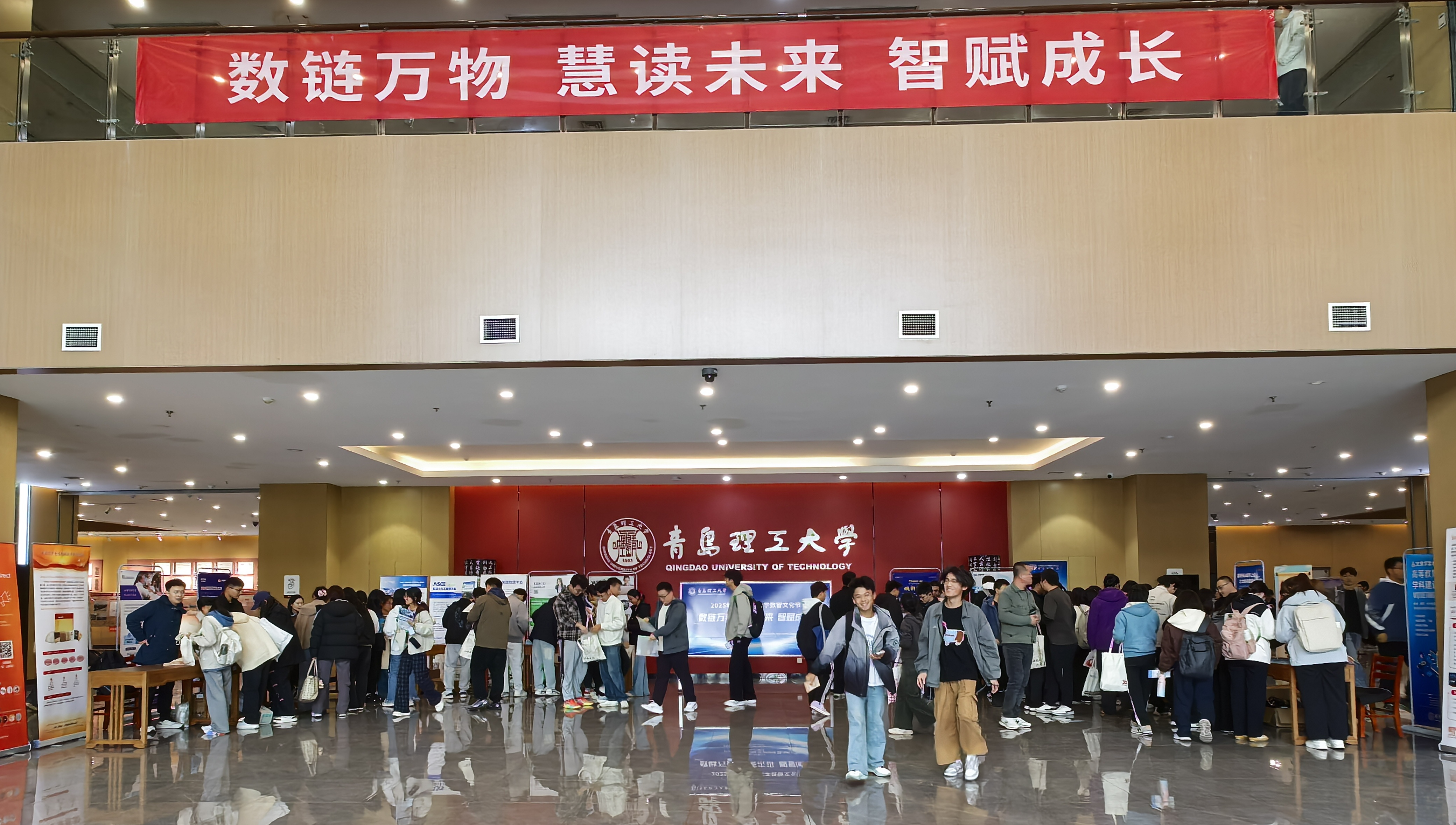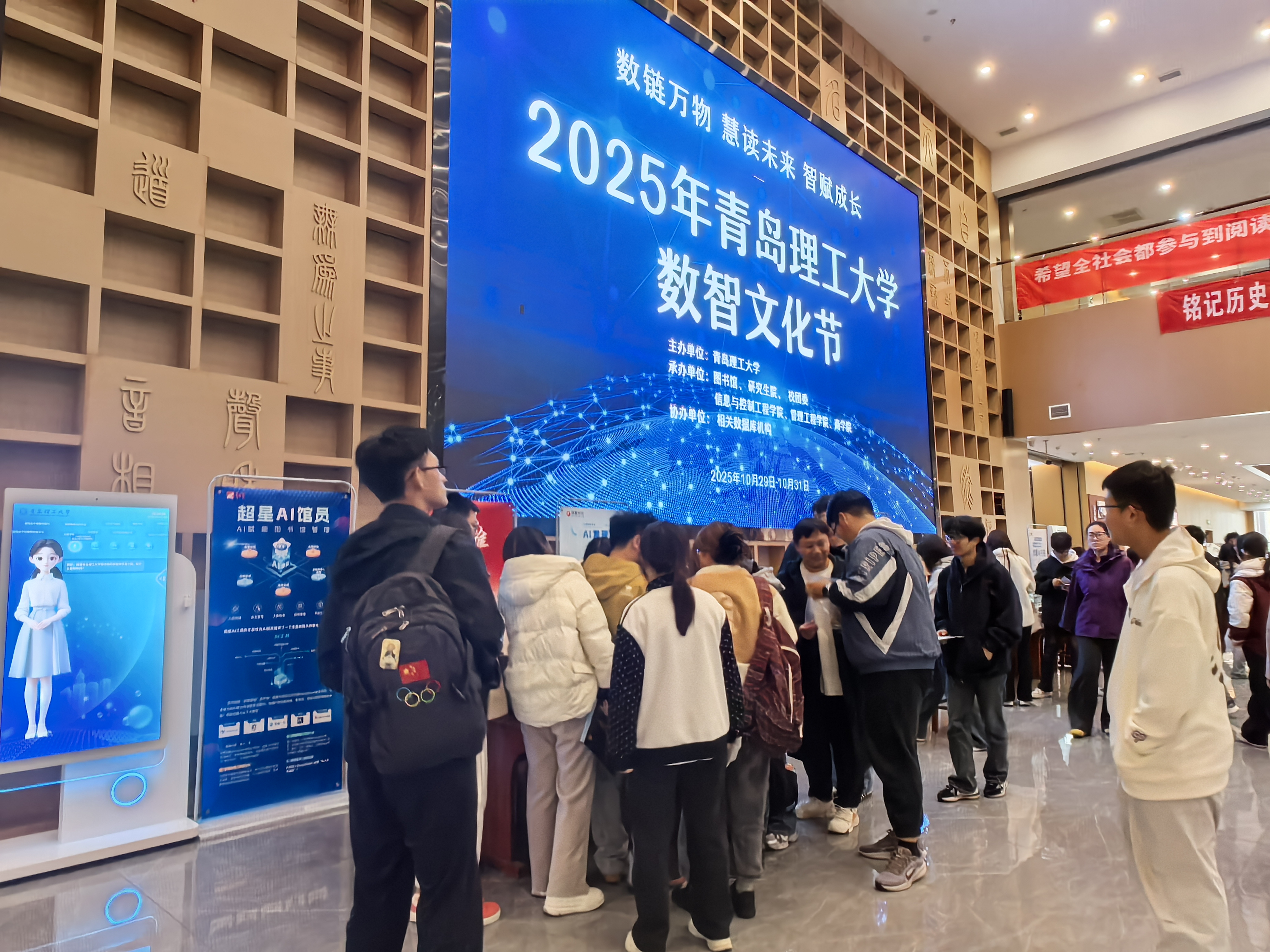10月29日,青岛理工大学首届数智文化节在图书馆学术报告厅正式拉开帷幕。本次活动以“数链万物、慧读未来、智赋成长”为主题,围绕数智技术与大学人才培养的深度融合展开,通过数据集市、AI设备体验、数智悦读书展、人工智能社团成立、馆院共建签约等系列内容,全面呈现学校在“AI+教育”领域的育人理念与探索成果。文化节由学校图书馆、研究生院、校团委、信息与控制工程学院、管理工程学院、商学院等单位联合承办,相关数据库机构协办,通过跨部门跨学院协同旨在打造具有理工特色、融合智慧与文化的新型育人平台,推动“数智理工”与“书香校园”融合建设发展。