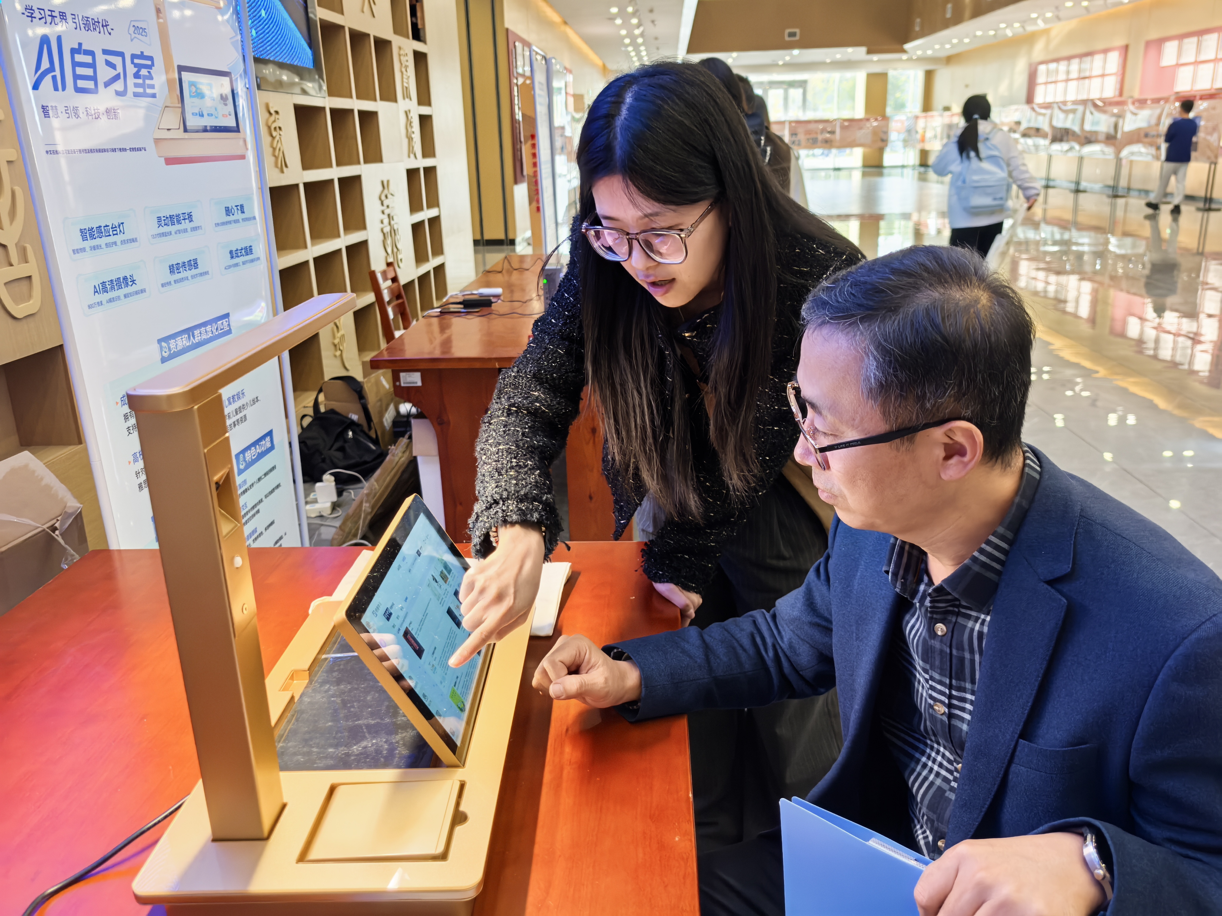 配合“数智悦读·声临其境”数字阅读书展,文化节还设置了“纸质书+AI语音导读”、全民阅读之“书香满中国”融合展区,观众在翻阅经典著作的同时,可通过扫码接入AI语音解读,实现“静默阅读”与“互动学习”的无缝衔接。这一设计响应了国家关于“推动全民阅读、建设书香中国”的号召,也体现出学校在传统文化载体中注入数智活力的创新思路。