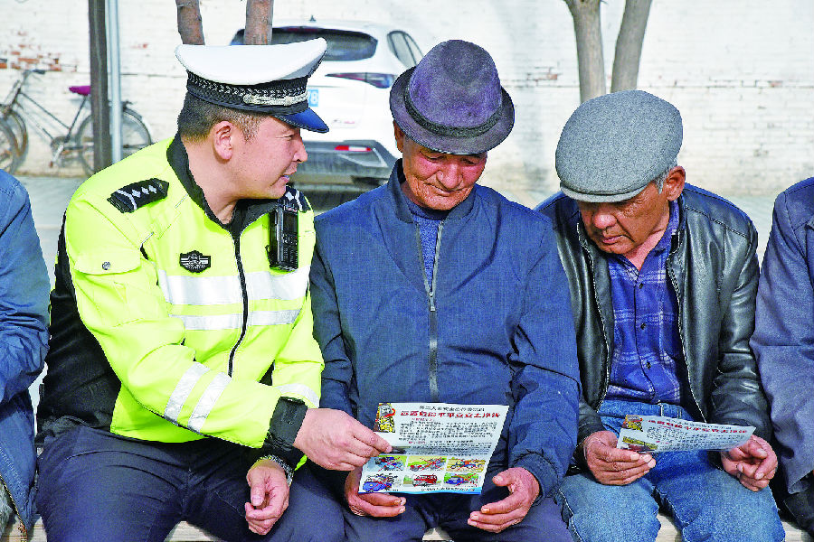 近日,霍尔果斯市公安局交管大队开展“一老一小”群体交通安全宣传活动。 王博 摄