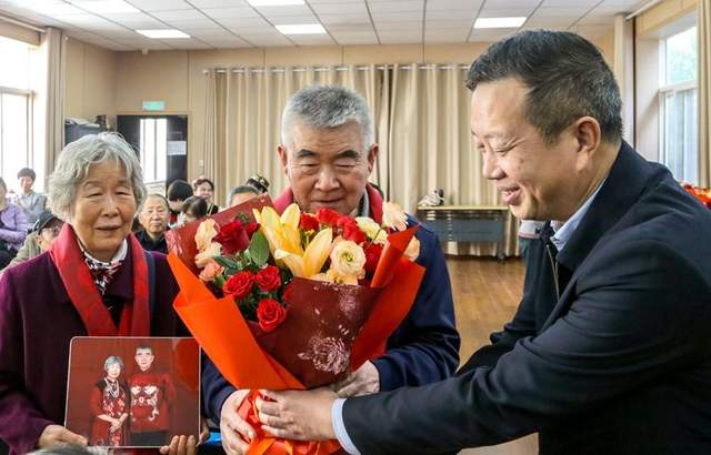 活动现场暖意融融,来兴平、黄英维亲手为老寿星和金婚伉俪佩戴象征吉祥的红围巾,送上娇艳鲜花与定格美好瞬间的纪念照,将学校的心意传递到每位老同志心中。老寿星代表褚维盘老师、金婚伉俪代表王斗虎老师先后发言,真挚感谢学校长期以来的关心与关照,表示将继续以多种形式关注学校发展,为学校建设发挥余热。