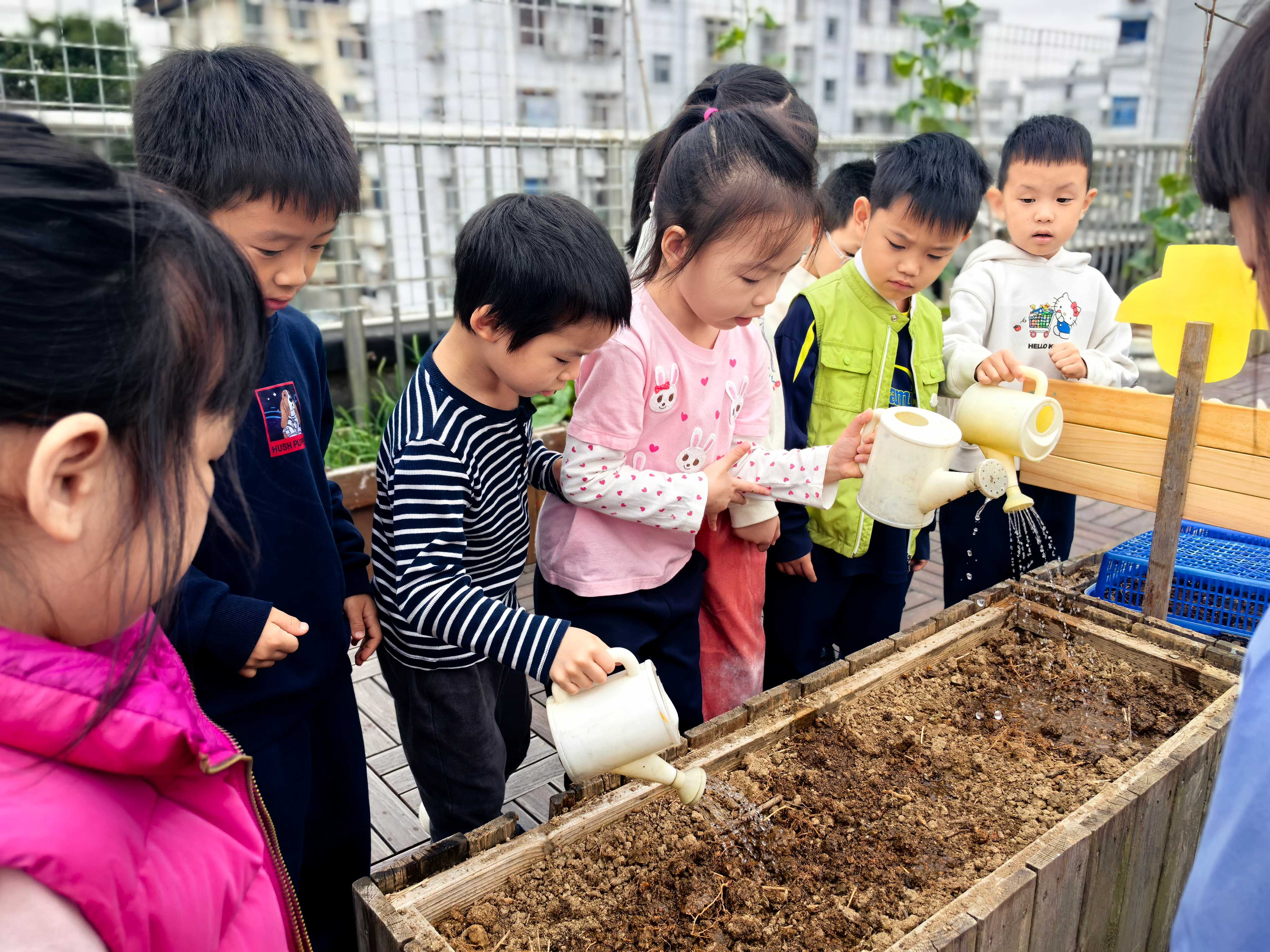 秋天不仅是丰收的季节,也是个适合播种的季节,宁波市海曙区爱菊云朵幼儿园这段时间开启了“秋日播种”主题实践活动,连日来,园里的小菜地成了孩子们每天都去“打卡”的小天地,“我的种子有没有发芽”“泥土干了,该浇水啦”……他们小脑袋凑在一起仔细观察自己种下的小种子,开启了见证植物生命的成长之旅。