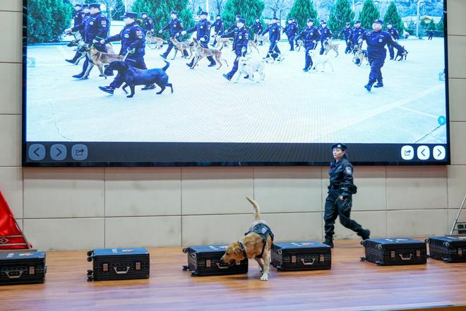 活动还设置了惊喜环节——警犬表演。“神秘嘉宾”闪亮登场,它们矫健的身手、精准的指令执行赢得了师生们的阵阵惊呼和热烈掌声。表演结束后,同学们纷纷有序上前,与这些“无言的战友”亲密互动、合影留念,将现场气氛推向高潮。