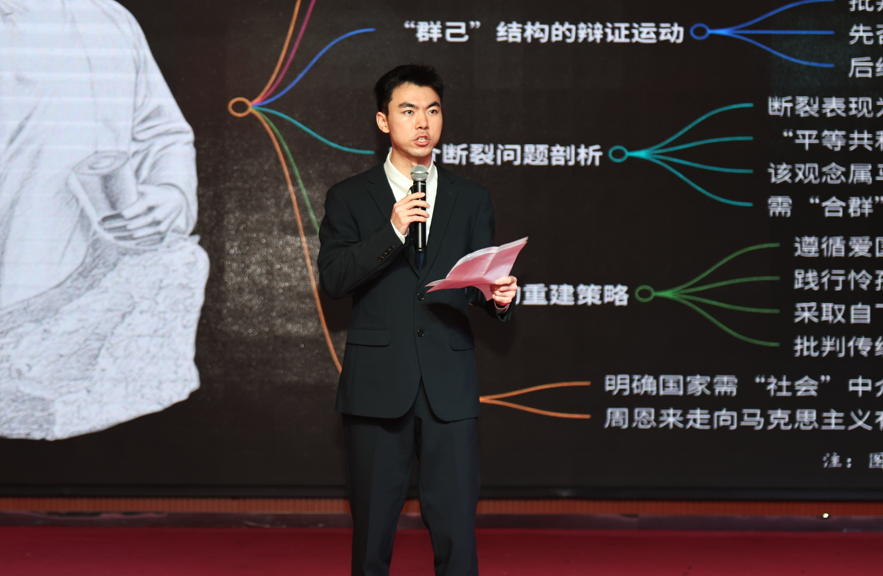 杨明伟在讲话中深情回顾了周恩来总理“为中华之崛起而读书”的志向、“愿相会于中华腾飞世界时”的愿望与建设现代化强国的遗愿。他充分肯定了举办本次征文分享活动和高质量发展研讨会的重要意义。他向广大青年学子提出“要像伟人那样,认真读原著、真正信原理、扎实做事情”的希望,鼓励大家以周恩来为榜样,传承好党的优良传统和精神风范,在强国建设和民族复兴伟业中,书写无愧于时代、无愧于人民的青春华章!